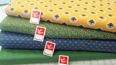 I'm  so thankful that things are finally getting back to normal....well a little bit normal.  You will want to stop in at the shop to take a look at these two sets of fabrics in the above pictures. They have been added to the sale items.  Remember, the sale fabrics are $8 a yard or only $6 a yard if you finish the bolt.  What a deal!